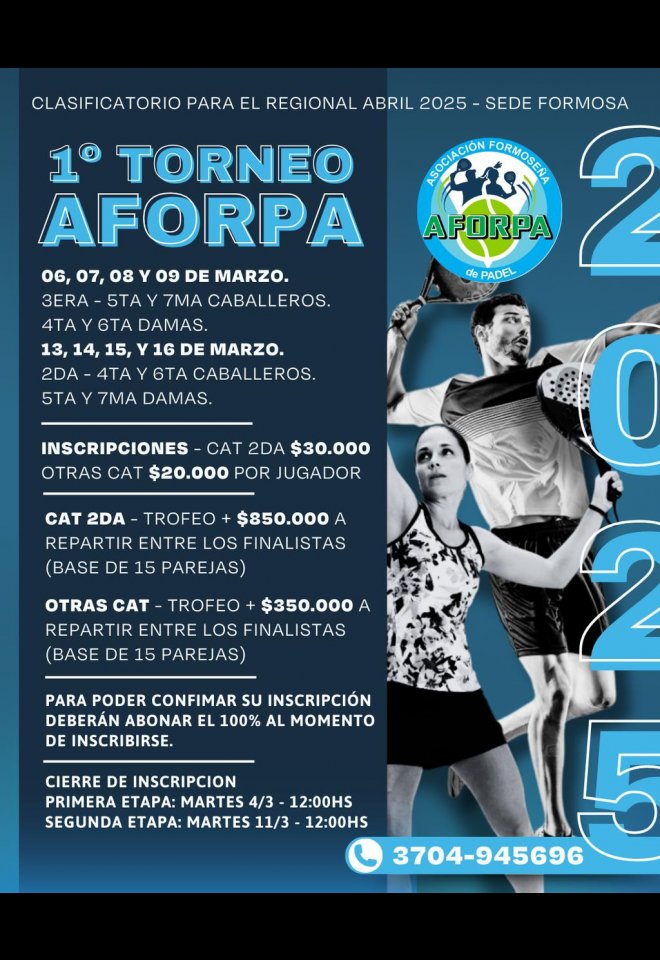 »» Evento: Etapa 1 AFORPA C3/5/7 D4/6 »» Localidad: Formosa »» Fechas: 06/03/2025 al 09/03/2025