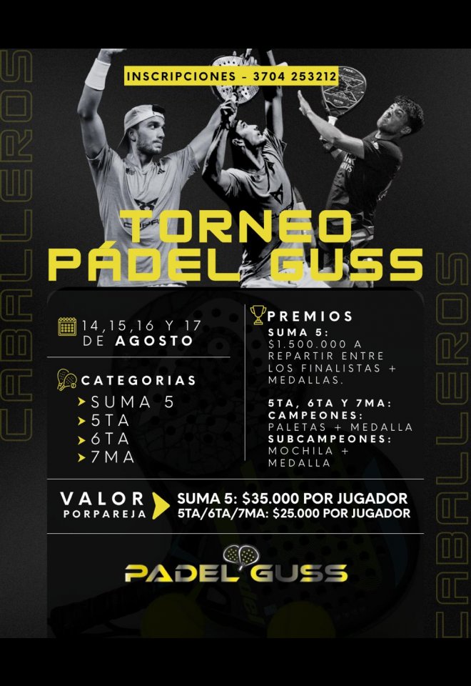 »» Evento: Torneo Padelguss »» Localidad: Formosa »» Fechas: 14/08/2025 al 17/08/2025